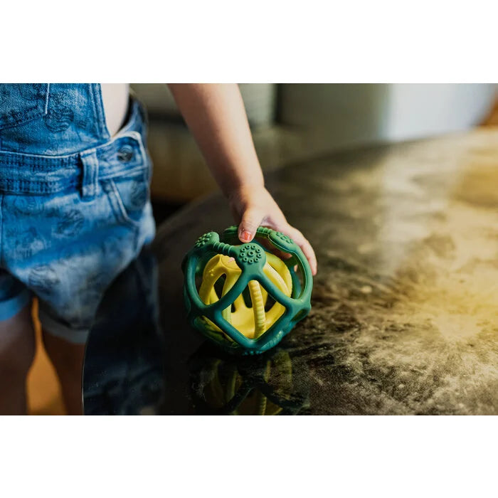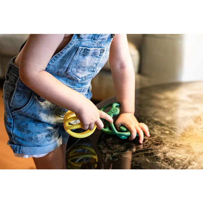 Groen-gele set sensorische siliconen ballen van Little L voor baby’s