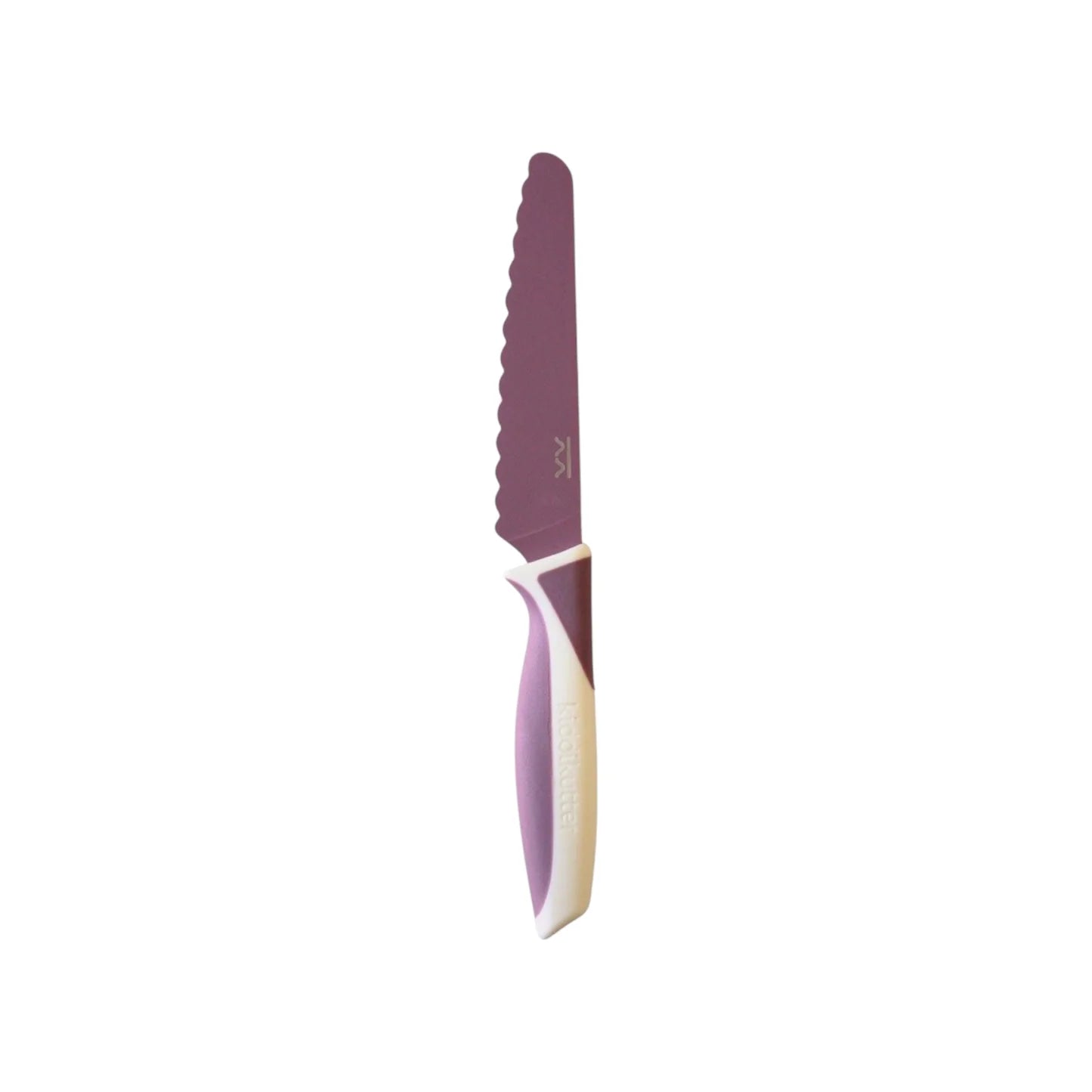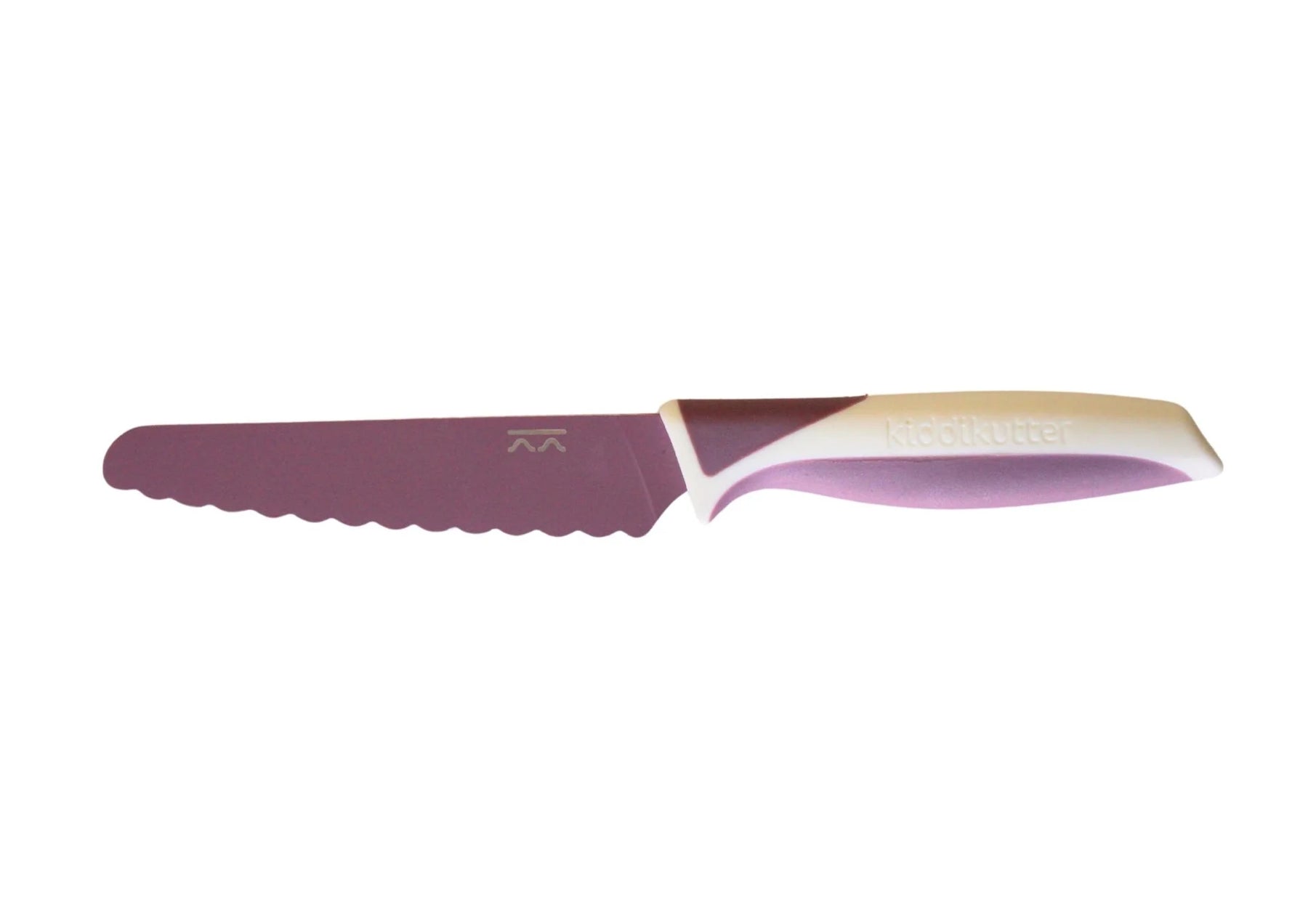 Het Kiddikutter kinder mes in de kleur Fig is speciaal ontworpen voor kinderen vanaf 3 jaar om veilig mee te helpen in de keuken.