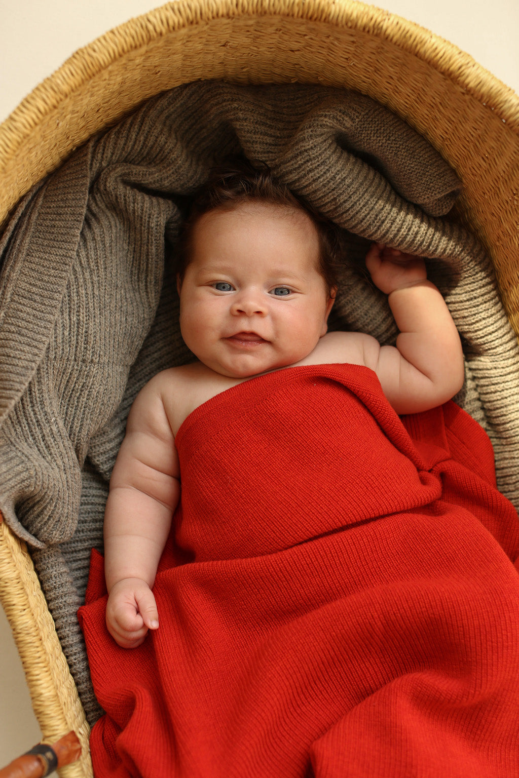 Door zijn ademende en temperatuurregulerende eigenschappen is deze deken geschikt voor elk seizoen. De stijlvolle rode kleur geeft een speelse, maar toch tijdloze uitstraling aan je interieur of kinderkamer. Met een formaat van 70 x 95 cm is hij perfect als wiegdeken, in de kinderwagen of gewoon voor gezellige momentjes op de bank.