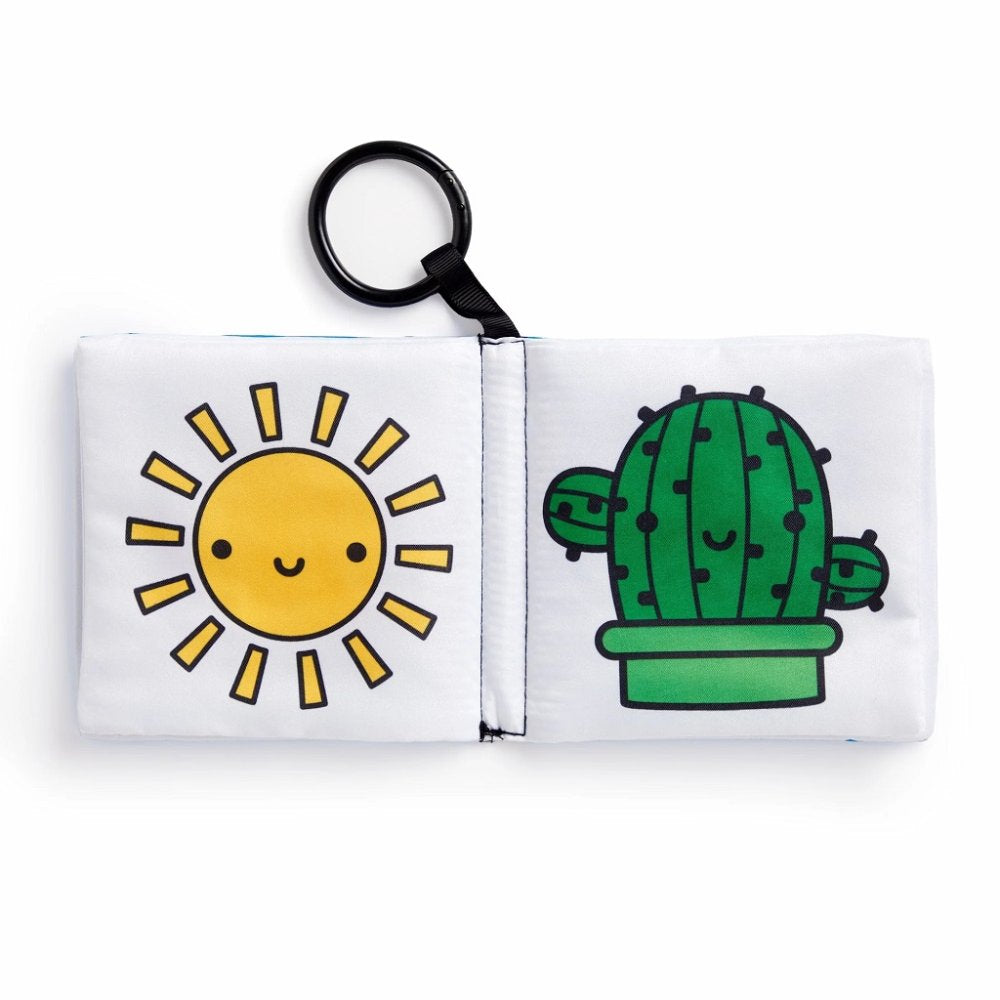 Het knispergeluid bij elke beweging stimuleert de zintuiglijke ontwikkeling, terwijl het omslaan van de pagina’s bijdraagt aan de fijne motoriek en oog-handcoördinatie. Dankzij de handige lus is het boek eenvoudig te bevestigen aan een kinderwagen, buggy of autostoeltje – perfect voor onderweg.