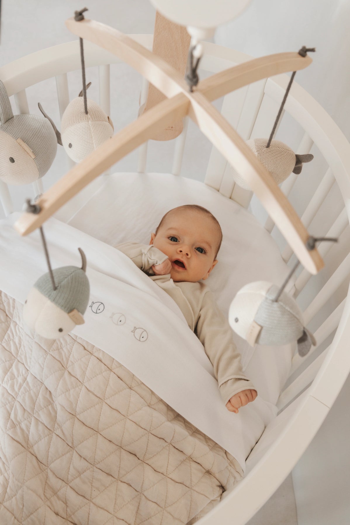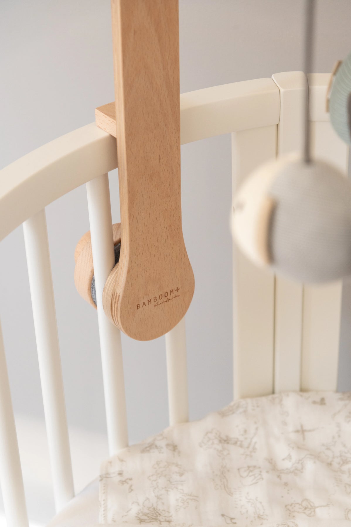 De mobielarm is eenvoudig te monteren op de rand van een wieg of box en blijft stevig op zijn plaats dankzij het veilige bevestigingssysteem. De universele haak maakt het mogelijk om diverse soorten mobielen te bevestigen – van muziekdoosjes tot zachte hangfiguurtjes.