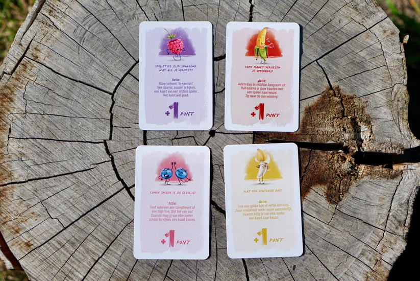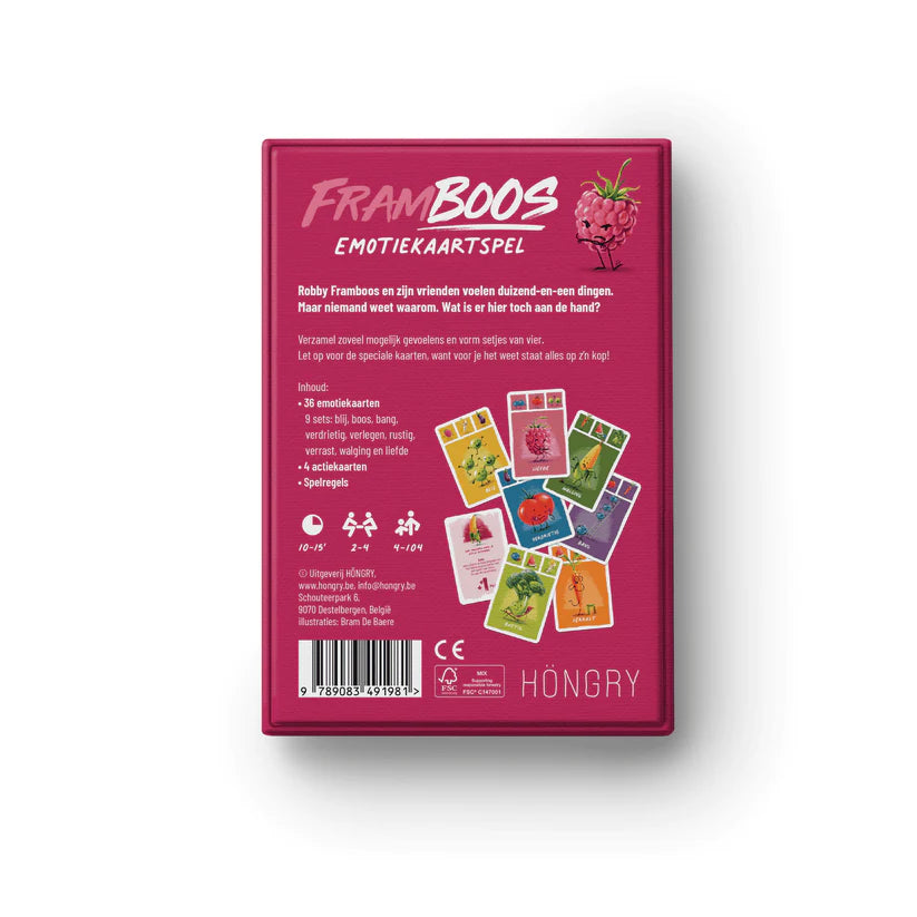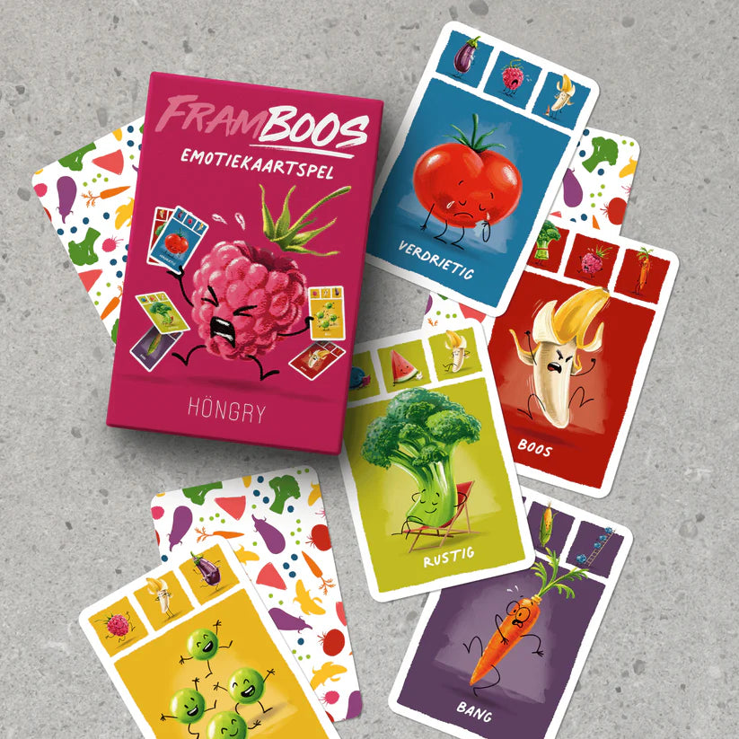Welkom in de wereld van Robby Framboos en zijn kleurrijke vrienden – waar emoties alle kanten op vliegen! In het HÖNGRY Emotiekaartspel verzamel je zoveel mogelijk gevoelens door setjes van vier te vormen. Maar pas op: de actiekaarten kunnen zomaar alles op z’n kop zetten!