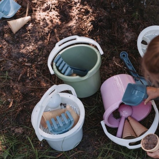 Perfect voor zintuiglijk spel en fantasierijk rollenspel, zowel in de zandbak, op het strand als in de tuin. Kinderen vanaf 2 jaar kunnen naar hartenlust scheppen, zeven, vormen en serveren, terwijl ze hun fijne motoriek, hand-oogcoördinatie en sociale vaardigheden spelenderwijs ontwikkelen.