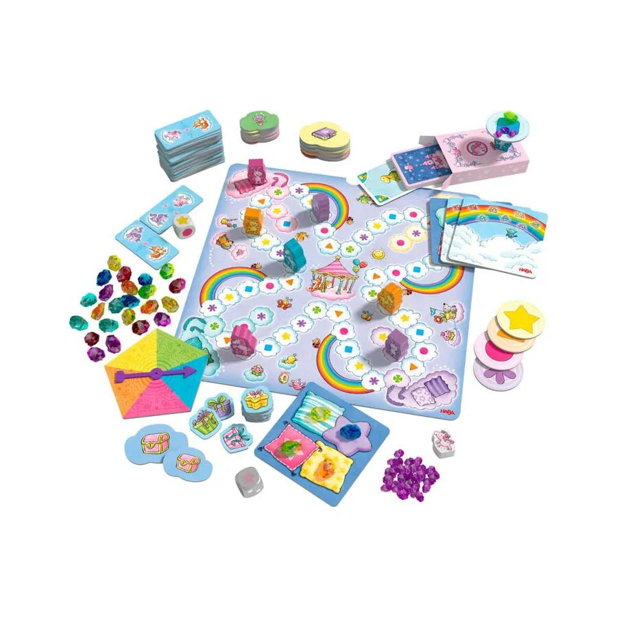 Stap in de betoverende wereld van Eenhoorn Flonkerglans en haar vriendjes met deze prachtige spellenverzameling van Haba.