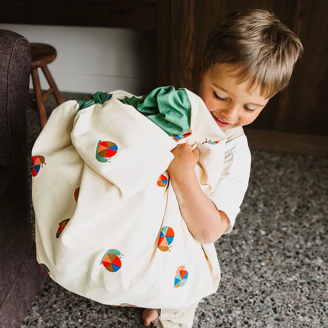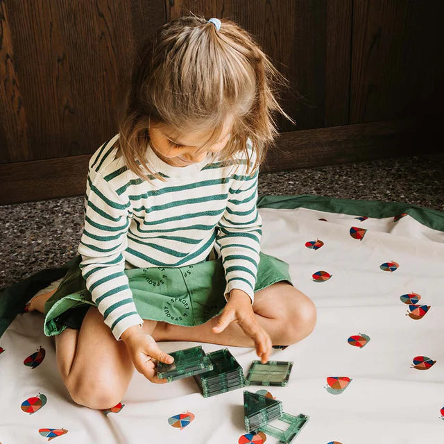 Met een diameter van 140 cm biedt de mat voldoende ruimte voor fantasierijk spel. Gemaakt van stevig katoen, is dit item duurzaam en gemakkelijk mee te nemen naar het park, de crèche of op vakantie. Een stijlvolle en praktische keuze voor ouders die houden van slimme oplossingen met een knipoog naar de natuur.