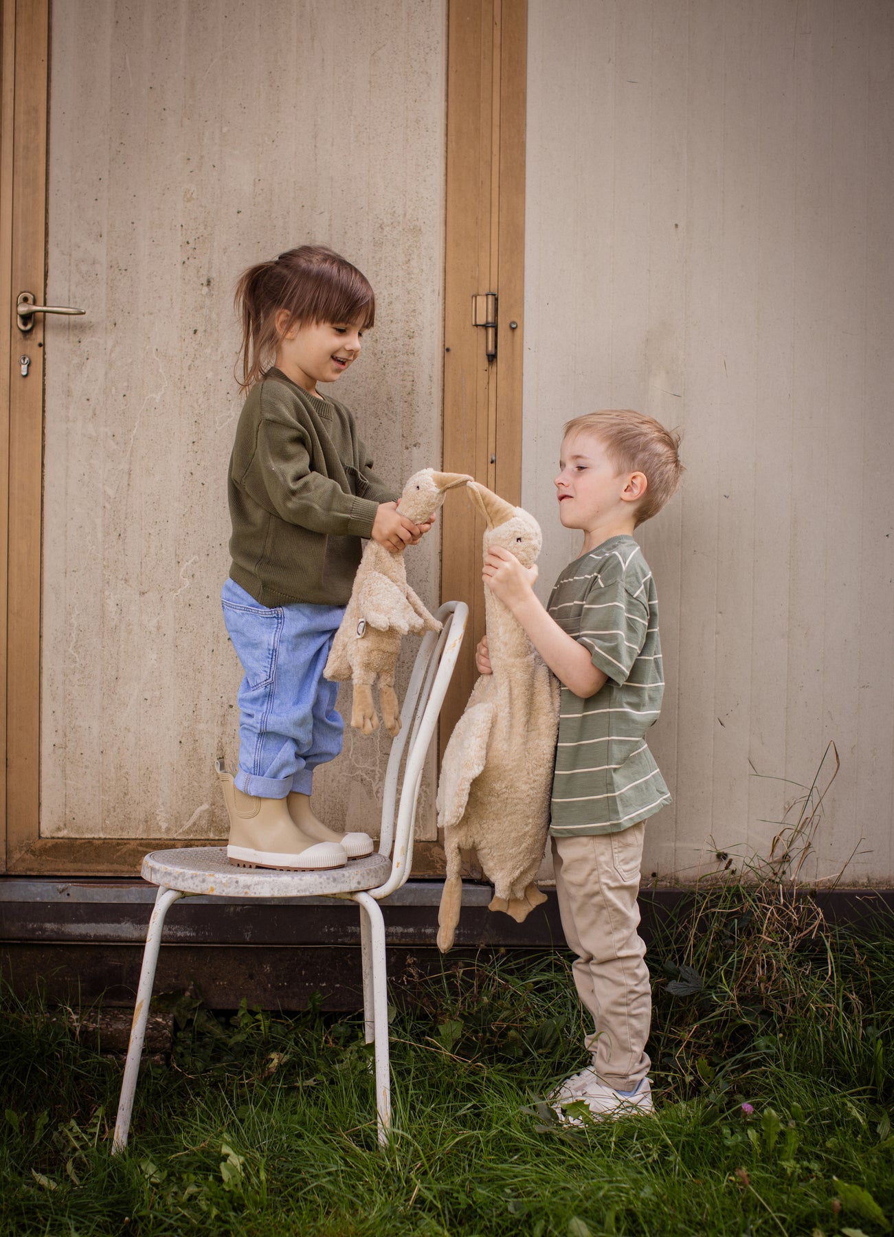 Deze kleine gans is 47 x 37 x 11 cm groot, lichtgewicht en daardoor ideaal voor kleintjes om overal mee naartoe te nemen. Dankzij het praktische formaat en de zachte linnen buitenzijde is het zowel een functionele warmtebron als een knuffelvriendje dat altijd paraat staat. Zelfs zonder verwarming is ze heerlijk zacht en uitnodigend om vast te houden.