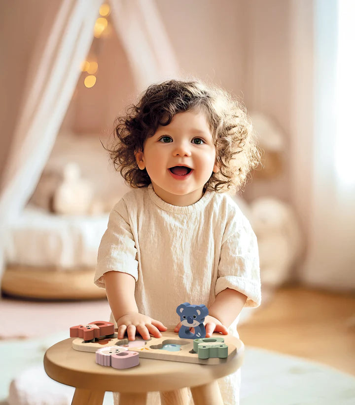 Laat je peuter kennismaken met vormen, kleuren en dieren met deze charmante Animal Puzzle van Speedy Monkey. Deze houten inlegpuzzel bevat schattige jungle-dieren zoals een olifant, leeuw en giraffe – elk met afgeronde randen voor veilig en eenvoudig gebruik door kleine handjes.