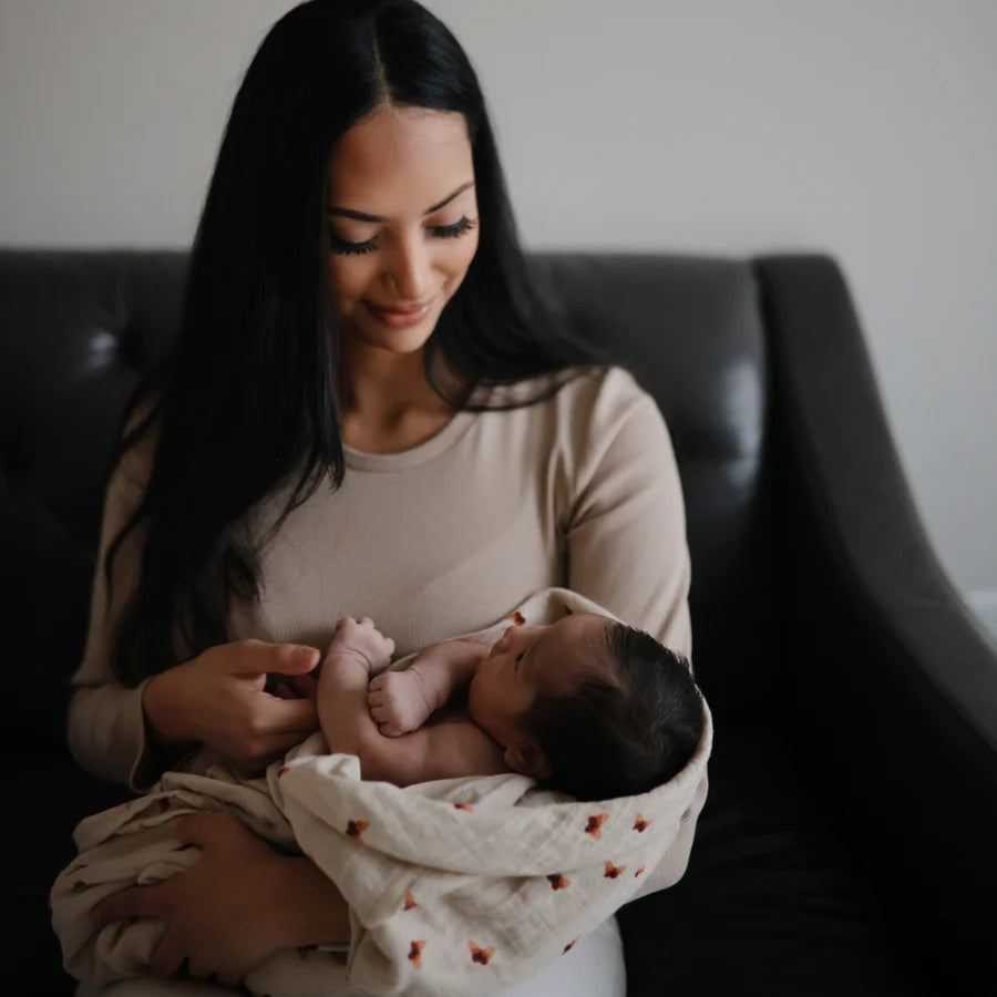 Laat je baby wegdromen in zachtheid met de mushie Swaddle Doek van mousseline katoen in de dromerige “Butterflies”-print. Deze multifunctionele doek is gemaakt van 100% biologisch katoen en biedt ultiem comfort dankzij de ademende, zachte en huidvriendelijke structuur. Perfect voor pasgeborenen en jonge kinderen.