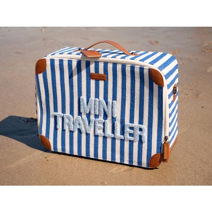 Maak elke reis moeiteloos en stijlvol met de Kids Mini Traveller koffer van Childhome in de kleuren Stripes Electric Blue en Light Blue.