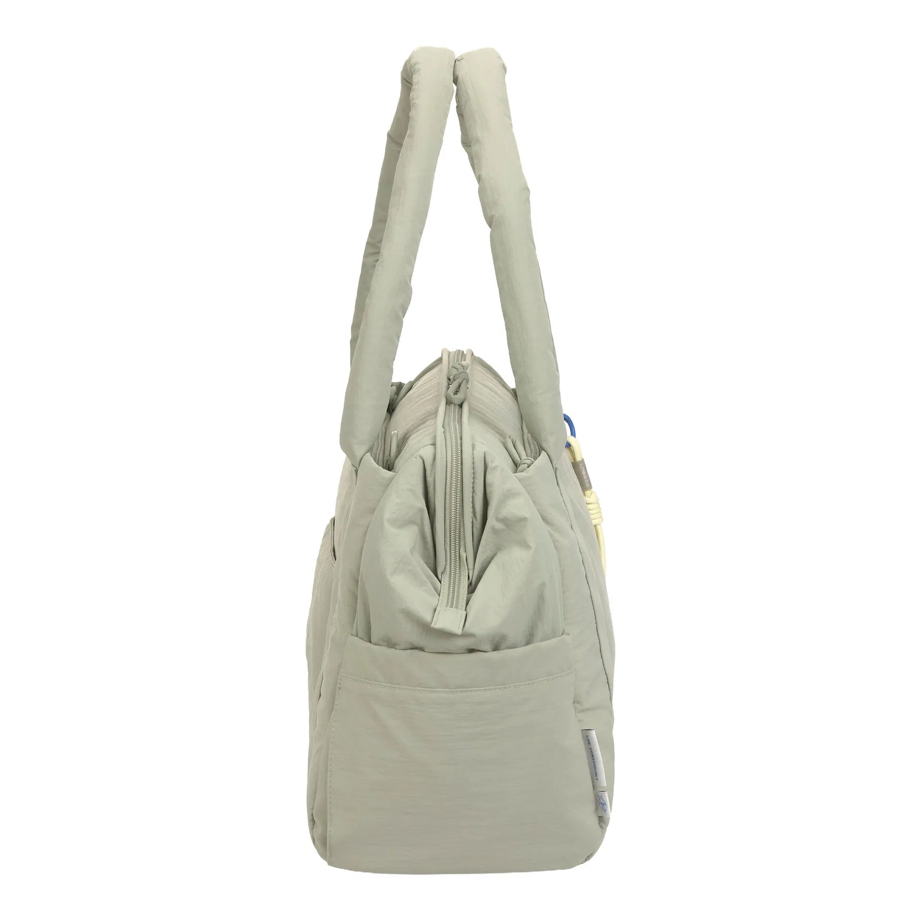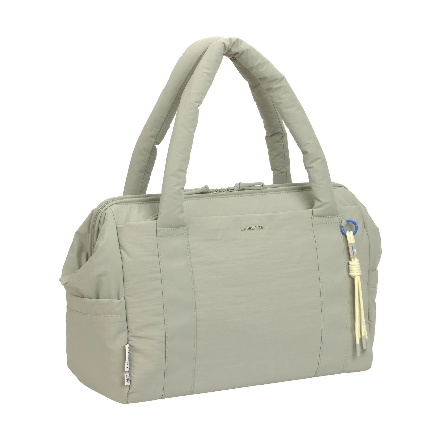 Het waterafstotende buitenmateriaal met subtiele crinkle look beschermt de inhoud tegen regen en kleine ongelukjes. Praktische details zoals zijvakken voor een fles of paraplu, een waterafstotend natvak en een geïntegreerde sleutelhouder maken de tas extra functioneel.