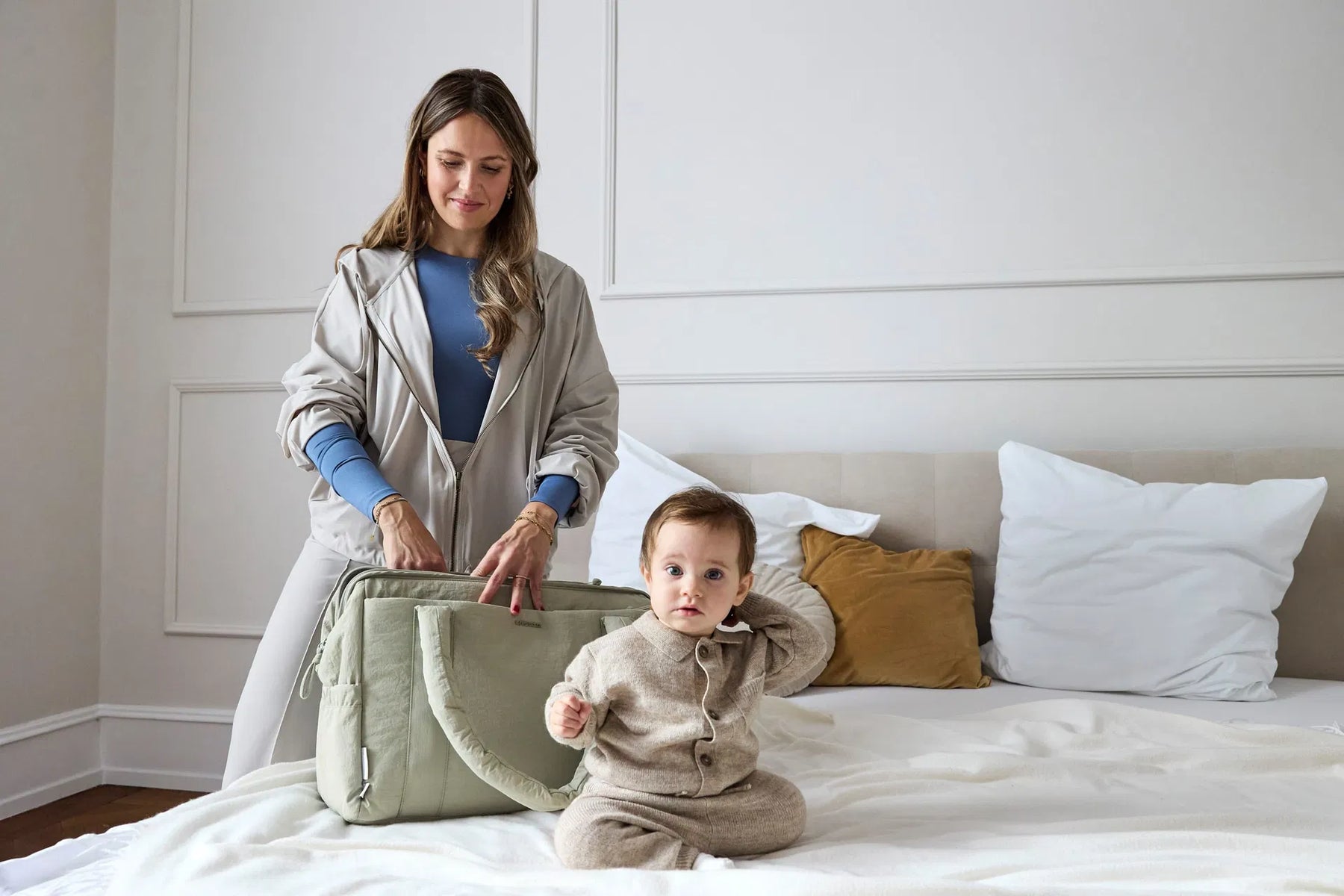 Dankzij de gevoerde schouderriemen, verstelbare schouderband en kinderwagenbevestiging neem je de tas comfortabel overal mee naartoe. De tas wordt geleverd met handige accessoires zoals een waterafstotend verzorgingsmatje, een utility pouch en kinderwagenhaken.