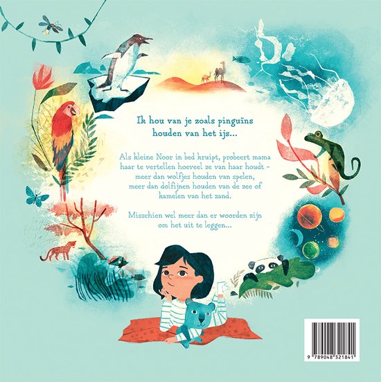 Wanneer kleine Noor naar bed gaat, probeert haar mama onder woorden te brengen hoeveel ze van haar houdt. Maar hoe leg je dat uit? Meer dan wolfjes van spelen houden, dolfijnen van de zee of kamelen van het zand… misschien zelfs meer dan woorden kunnen zeggen.