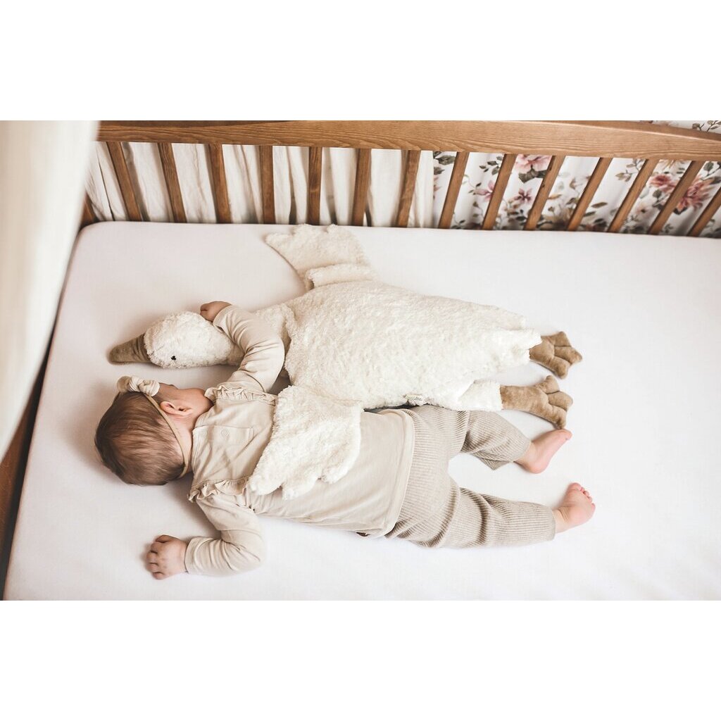 Deze charmante kleine gans werkt als knuffel én warmtekussen en biedt zowel warmte als verkoeling dankzij het uitneembare kussen gevuld met natuurlijke spelt of kersenpitten. Perfect voor bedtijd, ontspanning of gewoon een knuffelmoment. Gemaakt van GOTS-gecertificeerde biologische katoen en gevuld met zuivere scheerwol, is deze gans niet alleen heerlijk zacht en huidvriendelijk, maar ook een duurzame keuze.