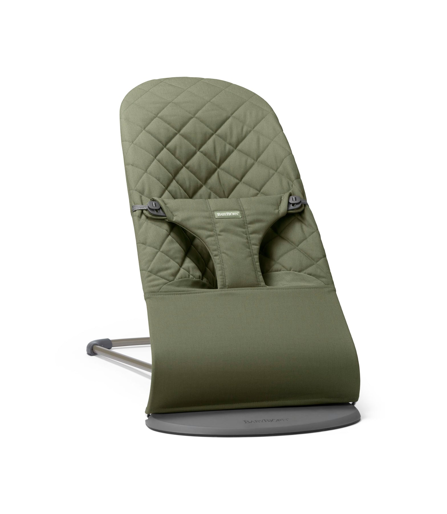 De donkergroene, geweven stoffen zitting onderscheidt zich door zijn tijdloze look en ademend vermogen, waardoor je baby in alle comfort kan rusten of spelen. De zachte wiegbeweging heeft een kalmerend effect op pasgeborenen, terwijl het actief bijdraagt aan de ontwikkeling van motoriek en evenwicht zodra je baby groter wordt.