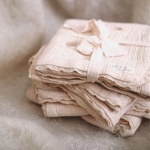 Voeg een vleugje romantiek en zachtheid toe aan je babyuitzet met dit betoverende babydeken van Gentil Coquelicot Paris. Dit zorgvuldig afgewerkte deken is gemaakt van 100% natuurlijk katoenen gaas en bestaat uit maar liefst vier lagen, wat zorgt voor extra comfort en ademend vermogen.
